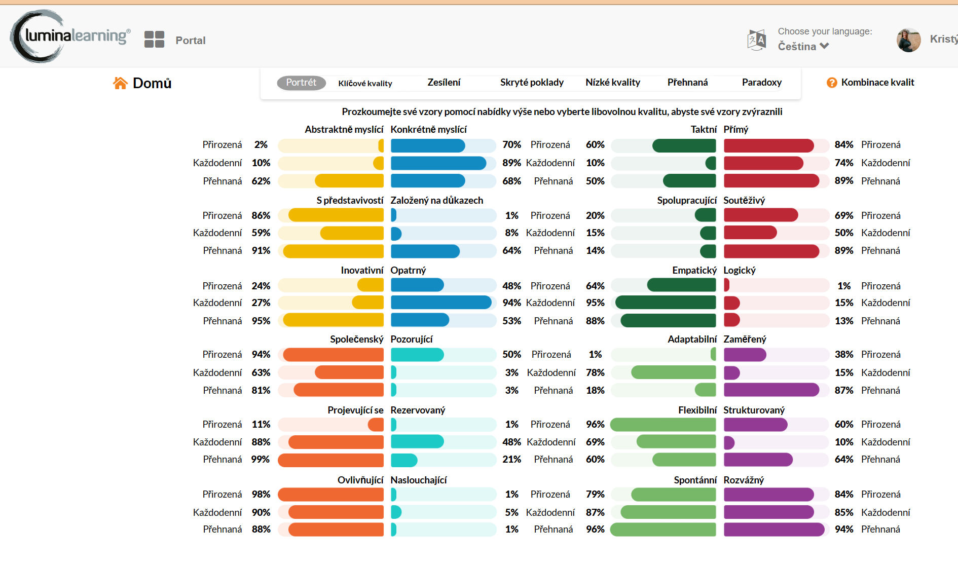 - Rozvoj pracovních kvalit na základě LUMINA SPARK portrétu